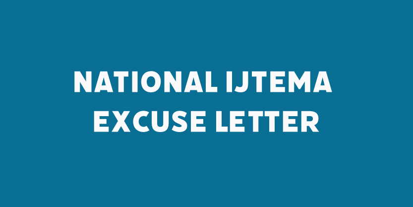 Available below is the Friday Excuse Letter and Eid Excuse Letter. Both are downloadable/ printable for your benefit. Please select the appropriate letter for your Atfal to hand in to be excused on such days.